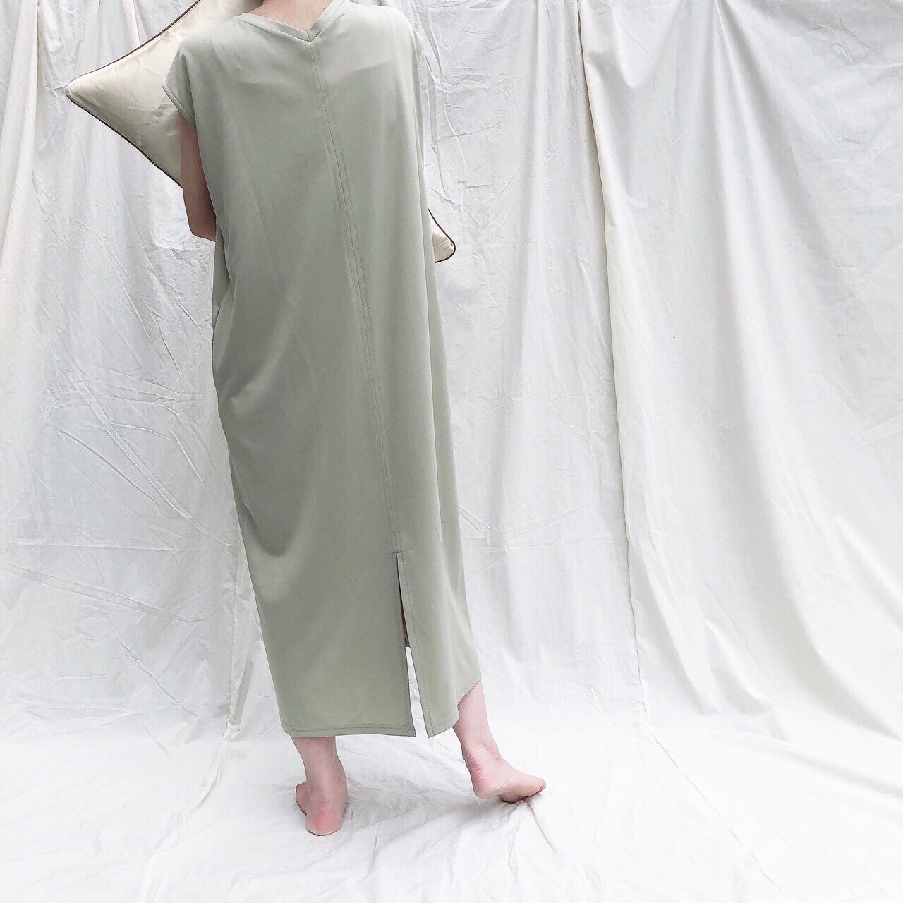 シンプルなデザインの中に後ろVネックと裾スリットを施すことで