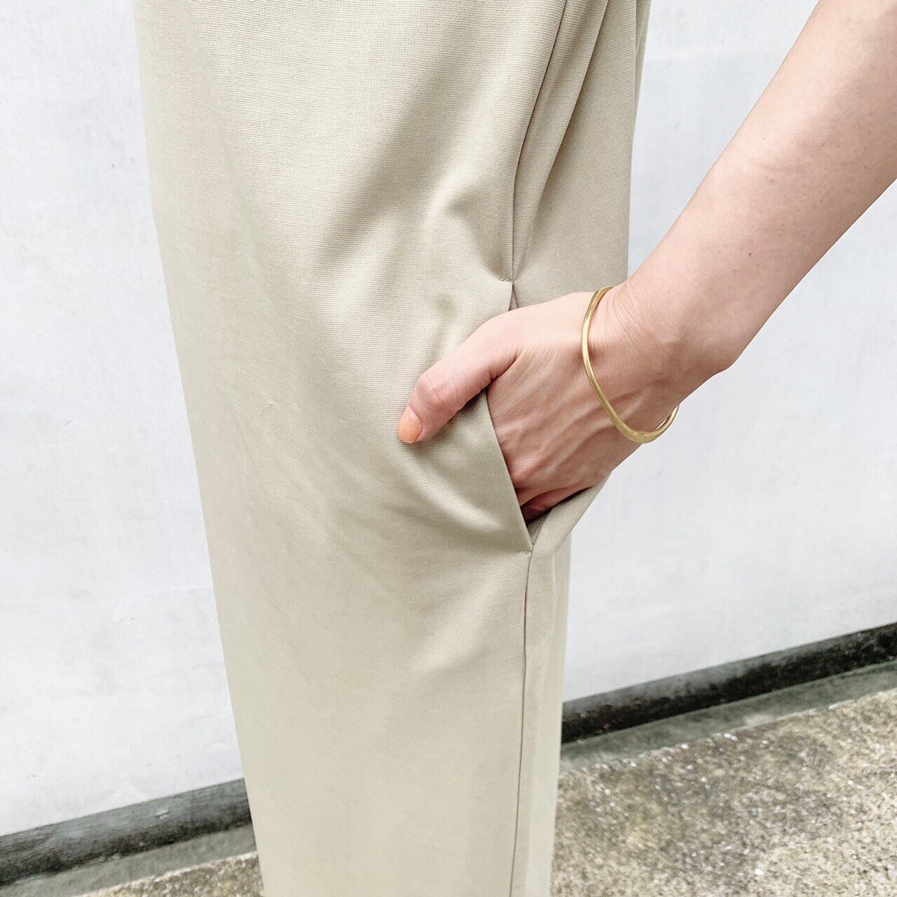 ストレートのシルエットと丈の長さで縦長効果を感じます。